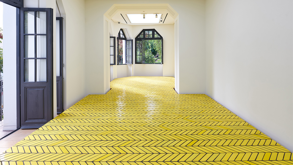 On January 18 Sarah Crowner (2020 Fellow) will close her solo gallery exhibition Night for Day at Gagosian in Athens, Greece. The centerpiece is a glazed tile installation called Platform (Yellow terra cotta).